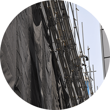 超高層・中低層マンションの大規模修繕工事をはじめ、橋梁、煙突、ダム、プラント等の各種工事で活躍しています。建物全体をシートで被う必要がないので、マンションの修繕工事では、工事作業外の階層は景観を損ねることなく日常生活を送ることができます。